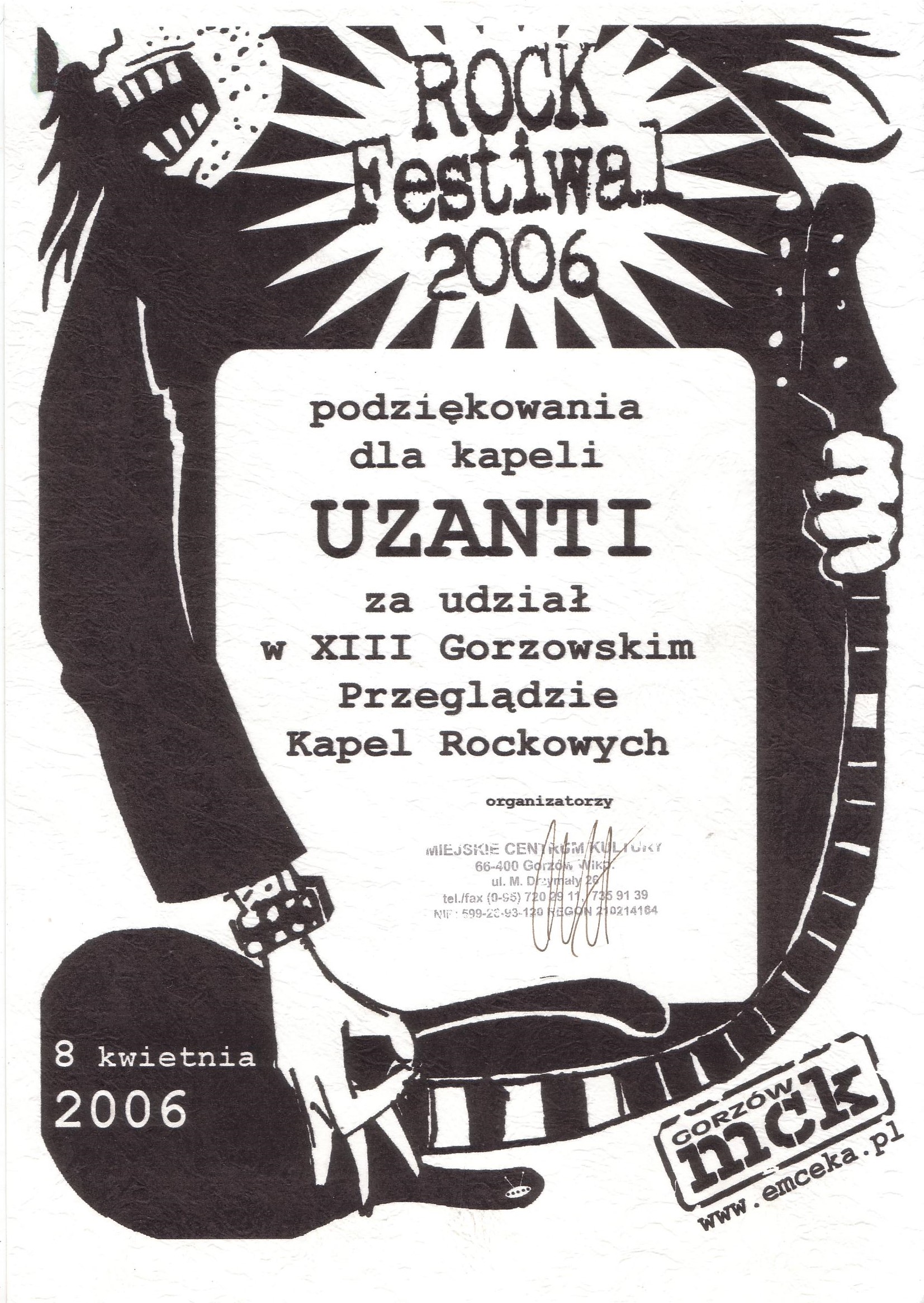 Zespół Uzanti - 3 miejsce na przeglądzie lubuskich kapel rockowych.